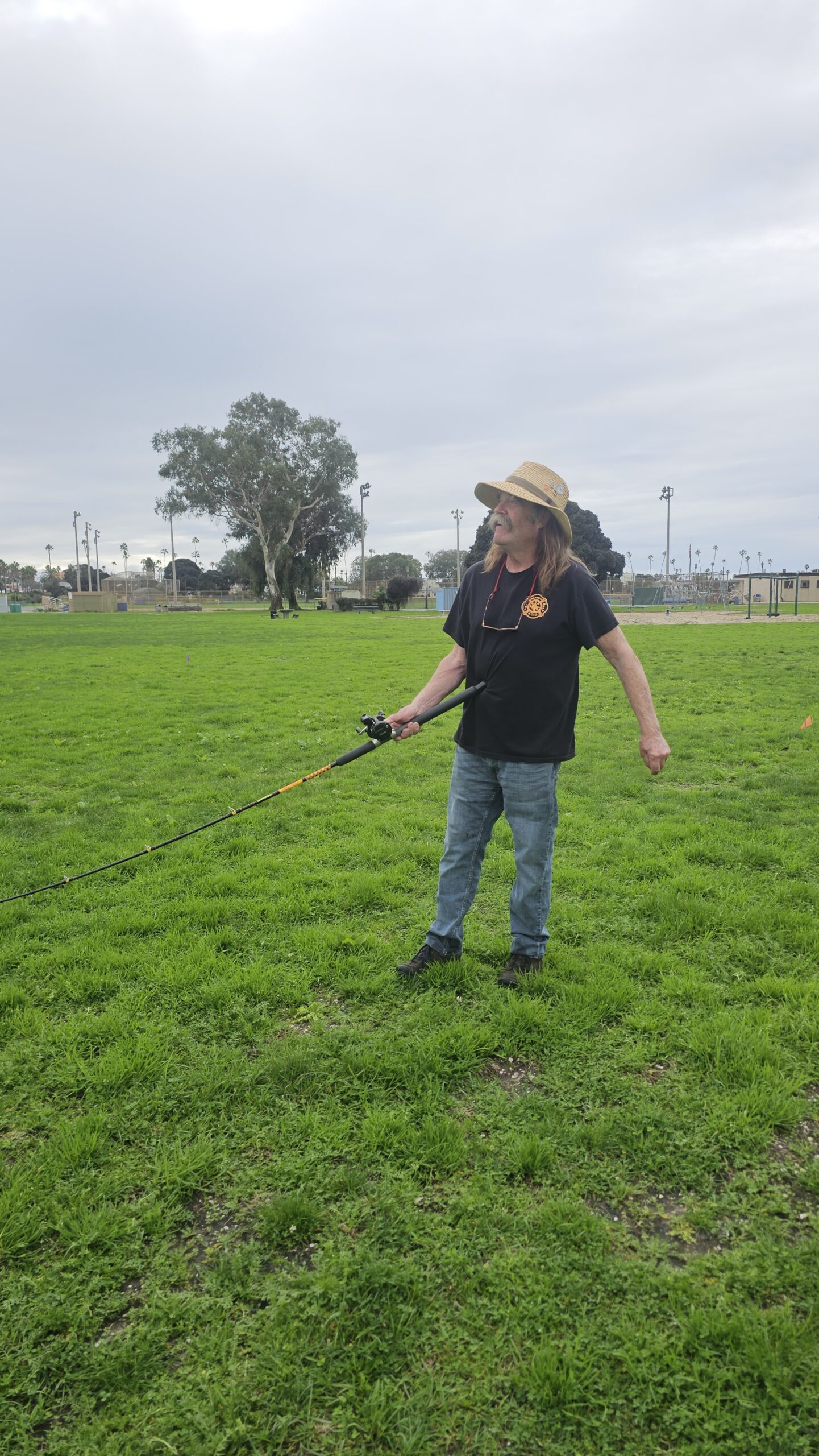 It’s an odd feeling to write so little about the Annual New Years Day fly. The day before, we celebrated the annual fighter kite competition, click here to read about it. With rain being present all weekend. Many fliers who planned to attend, felt the need to stay home. I encouraged people to stay out of the rain unless they insisted upon getting out. January 1st showed us very little to no rain but conditions were light throughout the morning and afternoon. On the scene at Robb Athletics field was Robert and Carol Freed, James (Flash) Quinby, Glenn Meader, Erin Quinn, Rod Treece, Mike, the Smith Family (Nick, Cass and kids), Vice President Dave (Niterider) Soutar and myself. The day before I was sporting a beard and shaved that night. When I got to the field, James didn’t recognize me. Being that we just met the day before, it made for a good chuckle. The pot luck was cancelled but a couple of members brought good eating anyhow. Glenn and Erin, thank you for being so warm hearted and considerate. You both fed the bunch of us and I won’t forget it.