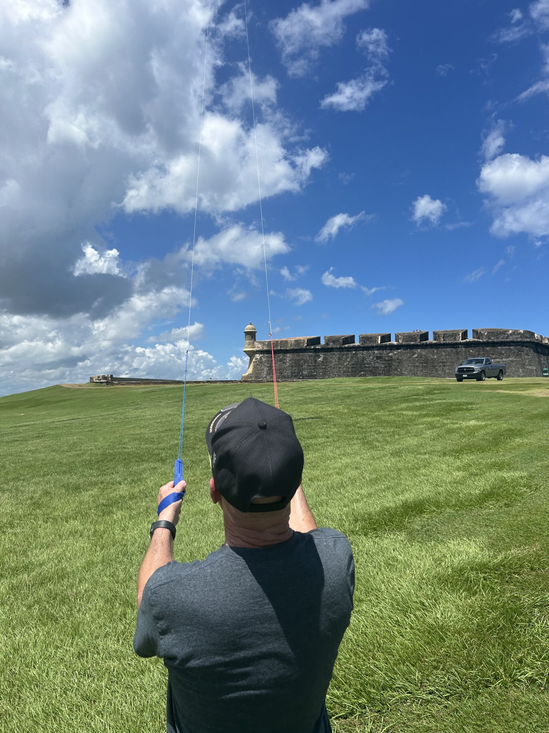 On September 2, 2025, Laura and I had the incredible opportunity to fly kites in one of the most breathtaking and historic locations we’ve ever visited—below the iconic El Morro, or Castillo San Felipe del Morro, in San Juan, Puerto Rico. As members of the San Diego Kite Club, we’ve flown kites in many beautiful places, but this experience was something truly special. The combination of history, culture, and the perfect kite-flying conditions made it a day we’ll never forget.